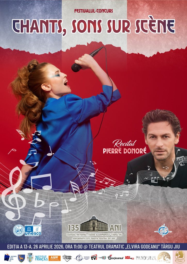 «Chants, sons sur scène» / ediția a 13-a, eveniment organizat de Colegiul Național ,,Tudor Vladimirescu” . Partenerii noștri sunt: Institutul Francez din România, Inspectoratul Școlar Județean Gorj, Consiliul Județean Gorj, Primăria Municipiului Târgu Jiu, Teatrul Dramatic ,,Elvira Godeanu” și Asociația Română a Profesorilor Francofoni – Filiala Gorj.