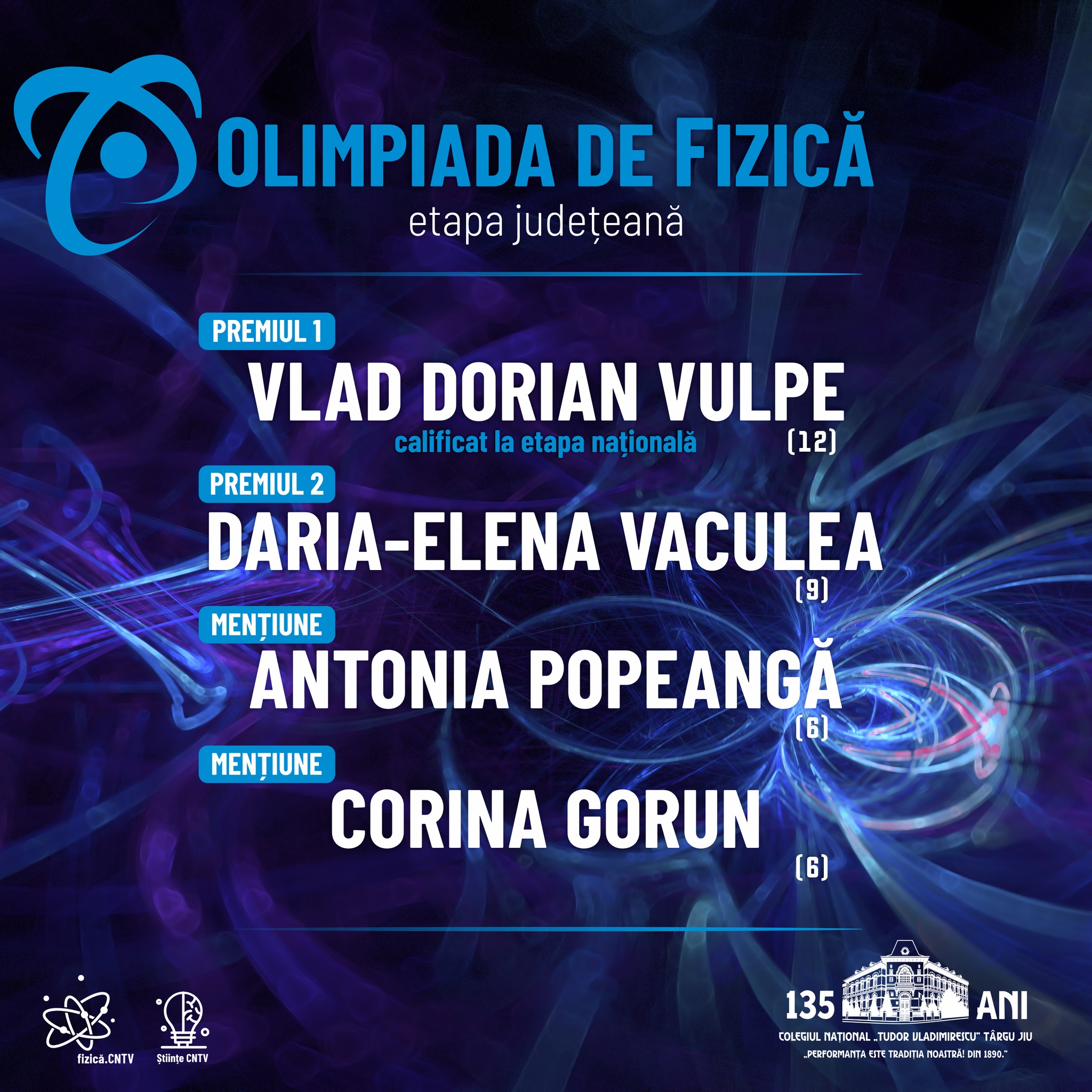 Felicitări pentru rezultatele obținute la Olimpiada Județeană de Fizică!