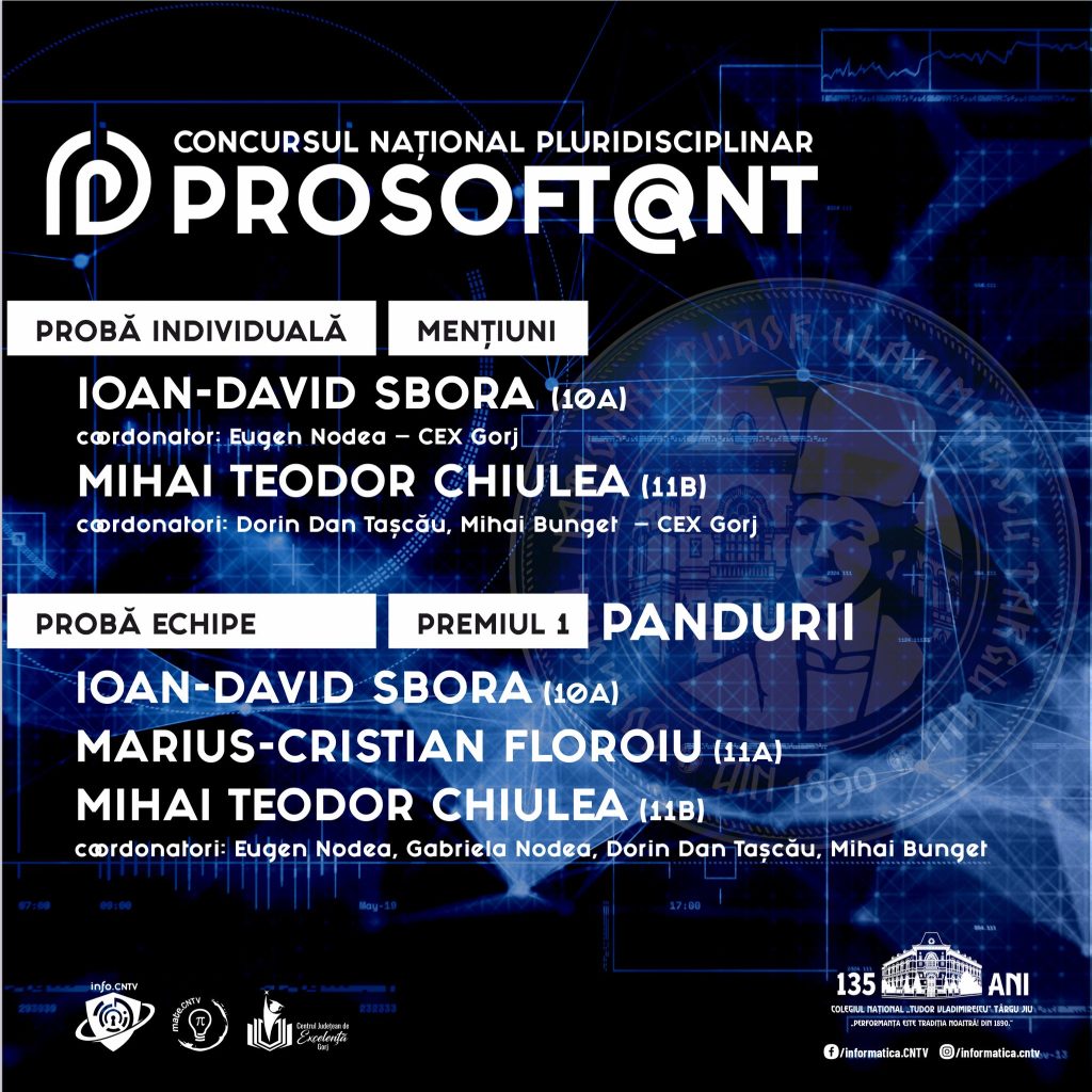 Felicitări elevilor noștri și profesorilor coordonatori pentru rezultatele excelente obținute la Concursul Național Pluridisciplinar PROSOFT@NT!