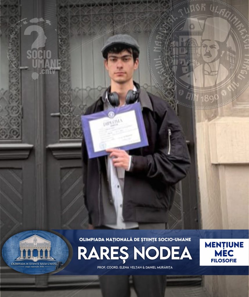 Felicitări elevului nostru Rareș Nodea (12C), pentru Mențiunea MEC obținută la Olimpiada Națională de Științe Socio-Umane — disciplina filosofie!