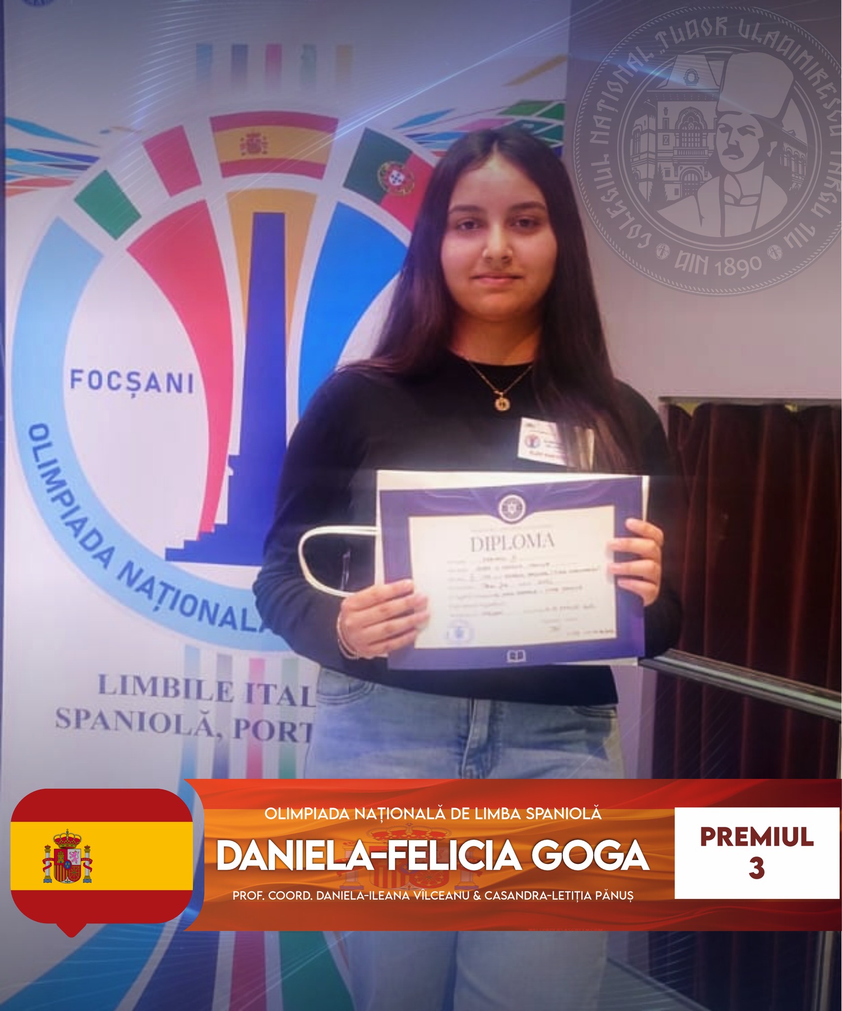 Felicitări elevei noastre, Daniela-Felicia Goga (9E), pentru obținerea Premiului 3 la Olimpiada Națională de Limba Spaniolă!