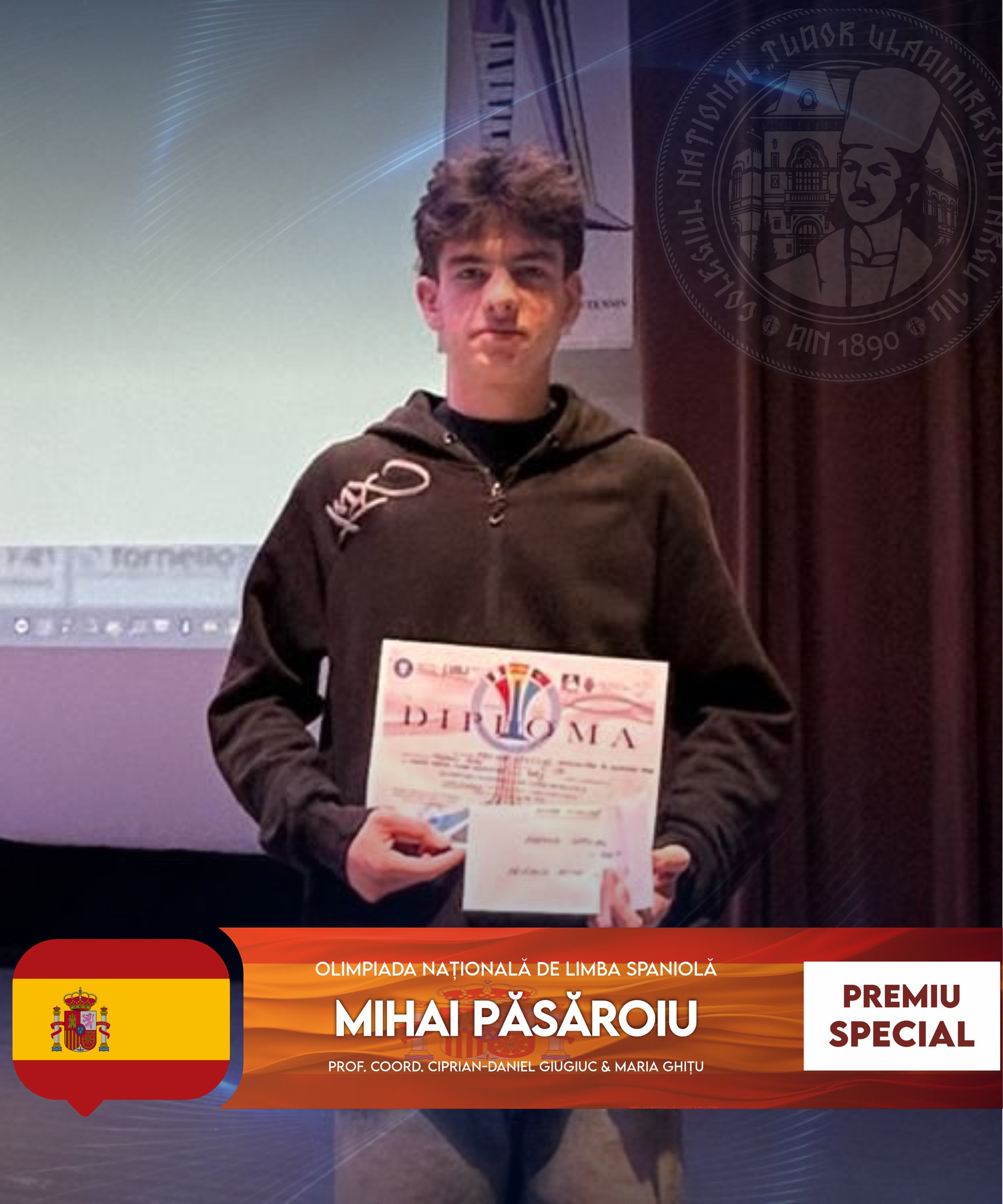 Felicitări elevului nostru, Mihai Păsăroiu (11D), pentru obținerea Premiului Special pentru originalitate la Olimpiada Națională de Limba Spaniolă!
